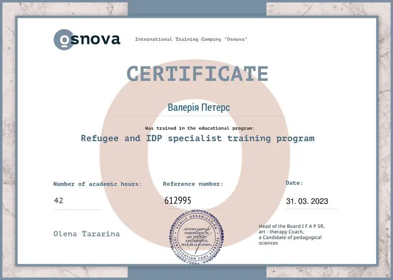 Працюю з дітьми від 4-х років, підлітками та дорослими. Основні вектори роботи - це стосунки, тривожність, неклінічна депресія, втрата та психологічна травма. Робота із випадками тривоги, депресії та самооцінки. З дітьми це проблемна поведінка та адаптація в навчальній групі.